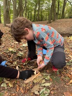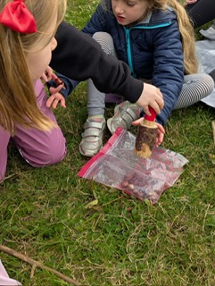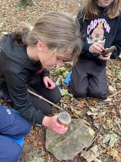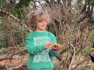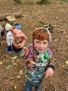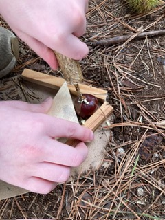 We started by sharing what we already knew about the Horse Chestnut and its shiny brown seeds, the conkers. The children enjoyed comparing the Horse Chestnut seeds with the Sweet Chestnut, noticing how different they are in shape, size, and even their prickly shells.