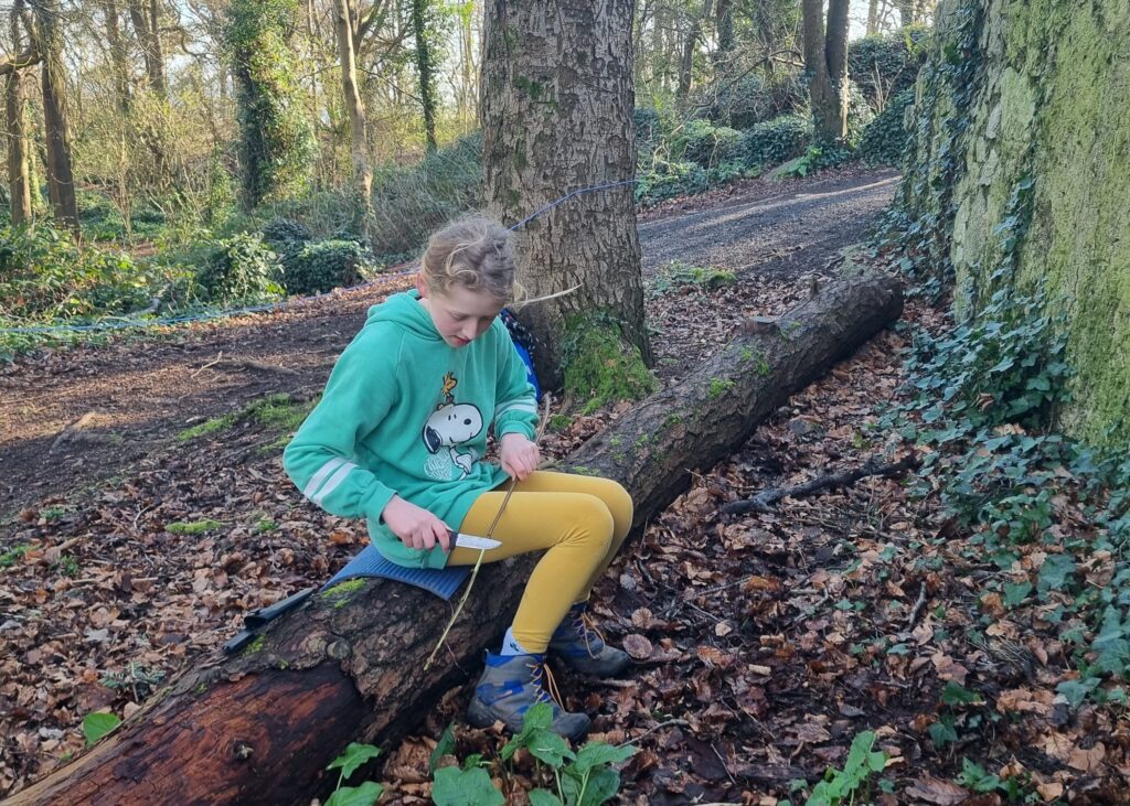 Some children also spent time whittling, carefully shaping sticks into arrows to throw, practising safe tool use and concentration.