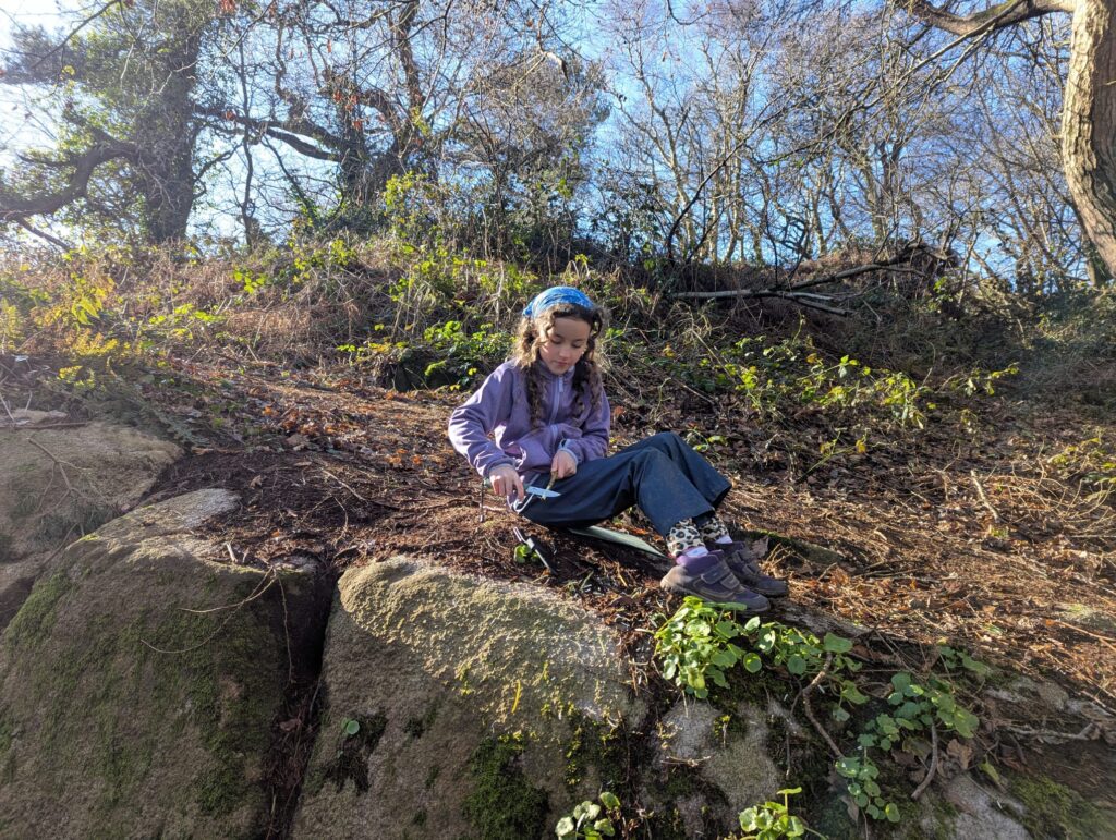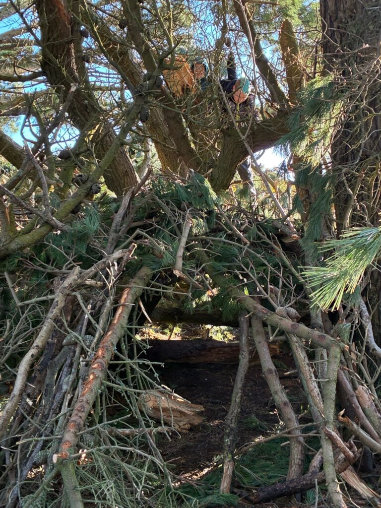 An interesting moment emerged during the session when two groups began to notice each other’s bases in the forest. This sparked a discussion about sharing space, cooperation, and keeping peace, much like groups of people would have needed to do long ago when living close to the land.