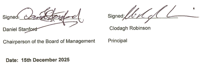 - Staff have completed Oide Child Protection Training for the new Child Protection Procedures 2025