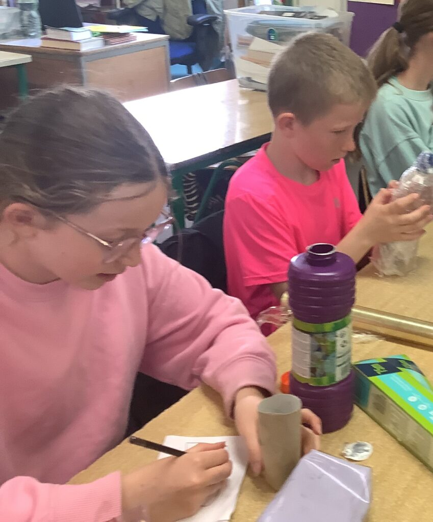 On Friday May 30th, 5th class and 6th class were visited by ‘Quavers to Quadratics’, an innovative programme which explores the intersection of the worlds of music and science through a series of hands-on workshops. The workshops focussed on allowing the children to not just hear sound but also see, feel and create it! The children were very excited to make their own instruments using recyclable materials and have the opportunity to play different instruments.