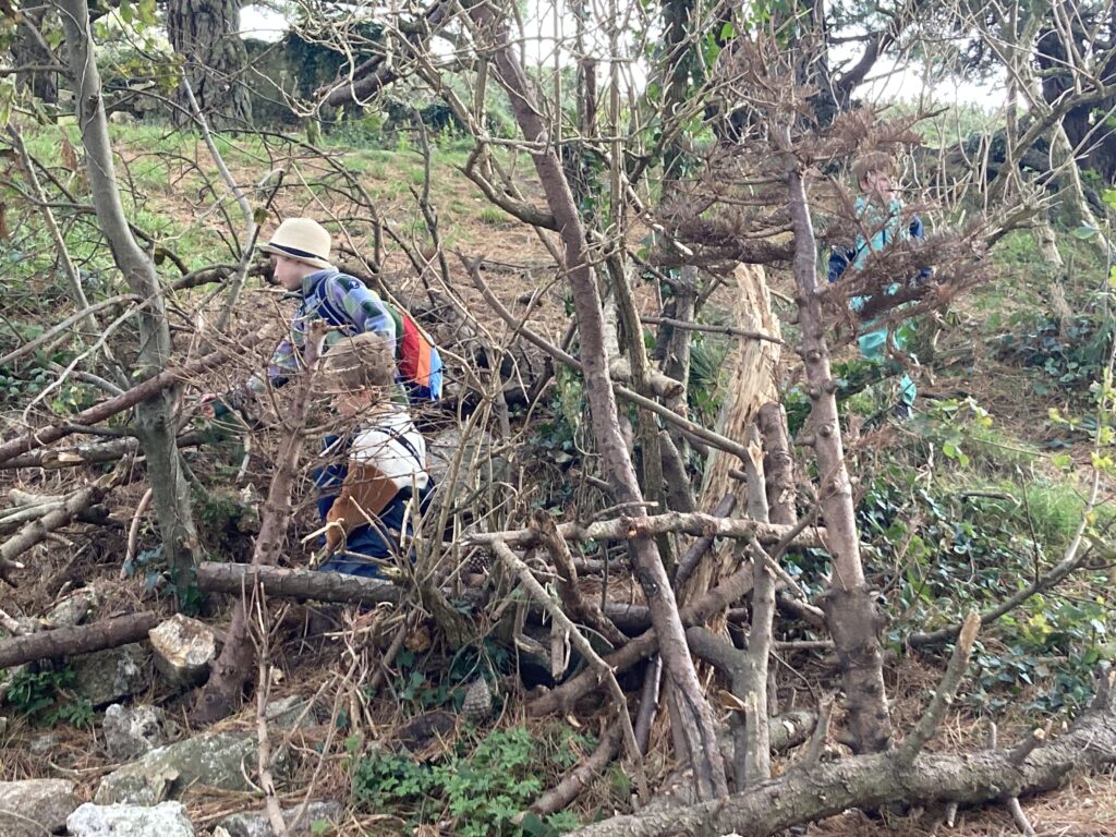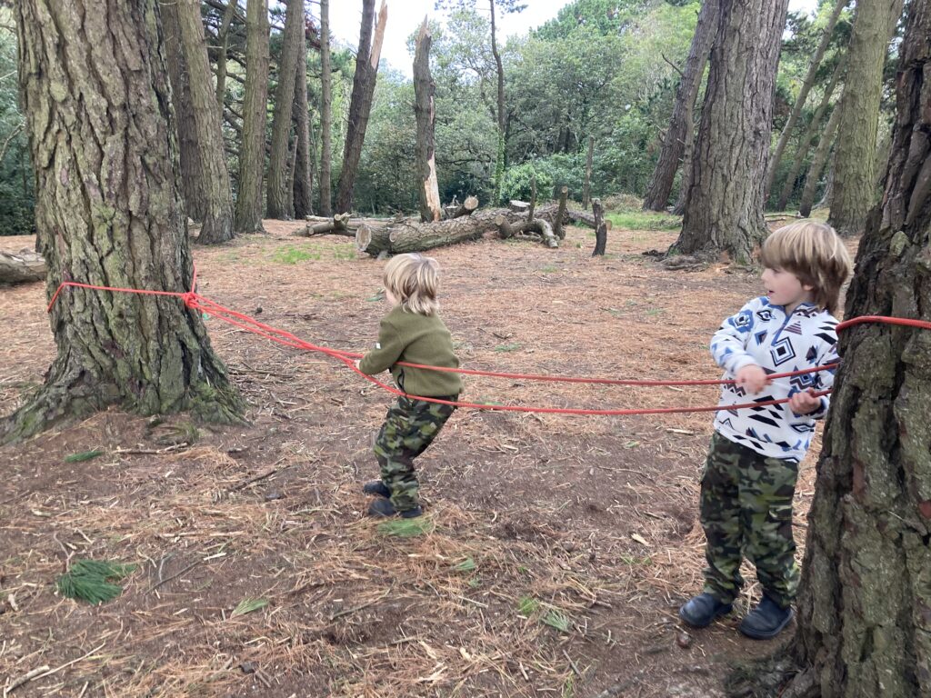 As always, there was plenty of choice and other rich learning happening throughout the session, with the activities naturally building on the children’s interests from previous weeks and led by their own curiosity. Some climbed trees, others found and shared nature’s curiosities, others constructed play with ropes whilst another group developed their den building.