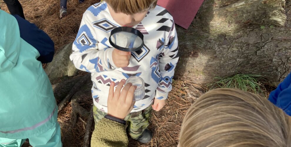Using bug containers, the children gently collected a few creatures for closer observation. They were encouraged to look closely and ask questions like: